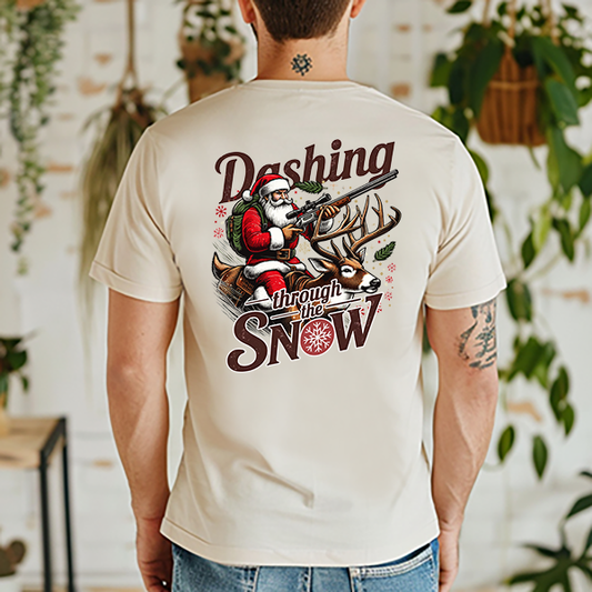 Santa Deer Hunting Transfer - T-SHIRT or LEFT CHEST Size
