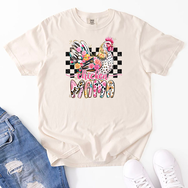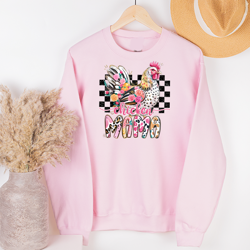 Calling all backyard chicken lovers—this one’s for you! Our Chicken Mama transfer combines farmhouse charm with a splash of sass. Featuring a bold black-and-white check backdrop, a floral-feathered hen, and playful patterned lettering, this design is as fabulous as the ladies in your coop.