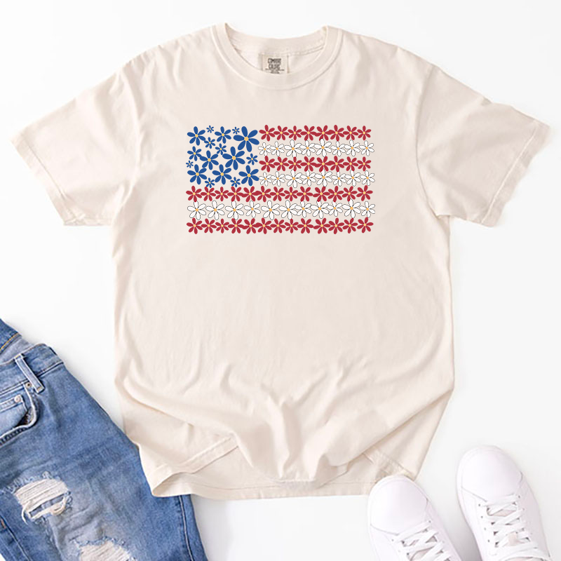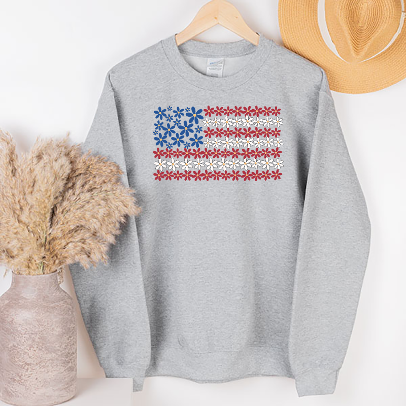 Show off your patriotic spirit with a floral flair! This daisy-filled American flag design blends classic red, white, and blue with a sweet touch of summer charm. Perfect for 4th of July, Memorial Day, or any day you want to let your love for the USA bloom.