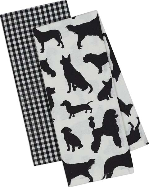 Set of 2 towels - Dog Show Dog Print & Black/White Mini-Check