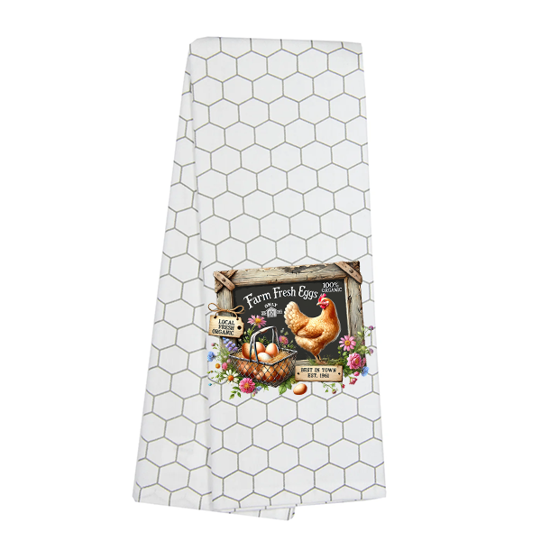 Perfectly sized for towels, totes, or throw pillows — and YES, it looks egg-cellent on our Honeycomb Kitchen Towel! (Just look at those cozy cottagecore vibes!)