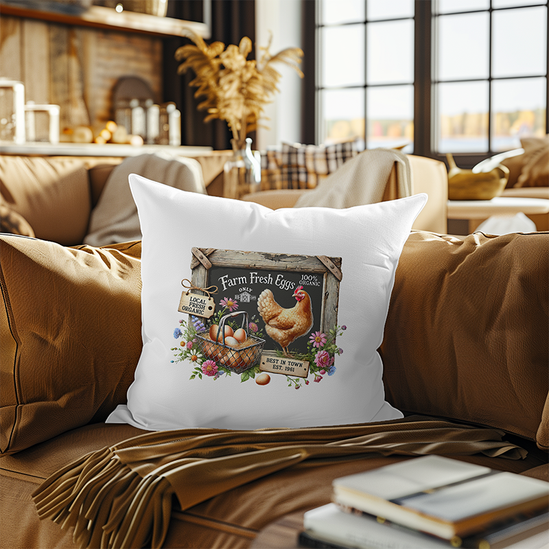 Add a little cluckin’ charm to your home with this “Farm Fresh Eggs” transfer! Featuring a proud hen, a rustic farmhouse chalkboard, and a colorful bouquet of wildflowers, this design brings vintage market vibes to any kitchen, porch, or comfy corner.