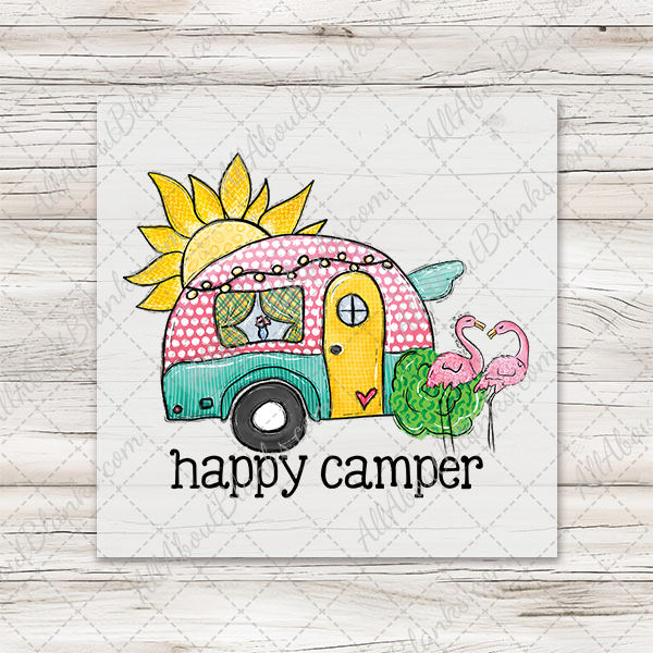 This one’s for the sunshine chasers and flamingo lovers! With its playful pink camper, cheerful polka dots, sunny skies, and a pair of fabulous flamingos, this design is pure feel-good fun.