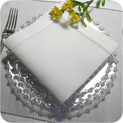 Hemstitched Linen Luncheon Napkins - 12 Inch Square