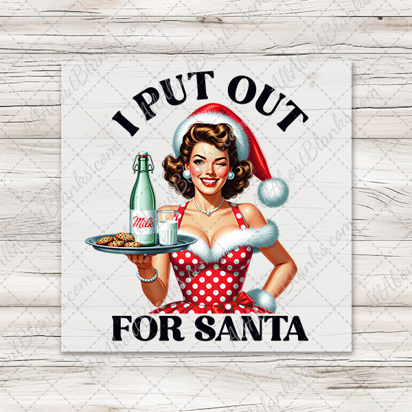 Milk, cookies, and maybe a little extra holiday spirit—this retro pin-up design serves up sass with a wink. Featuring a vintage-style beauty in a Santa hat holding a tray of treats, this hilarious transfer is perfect for tees, aprons, or party outfits that are guaranteed to get a laugh. After all, it’s Christmas… why not be on someone’s nice list?