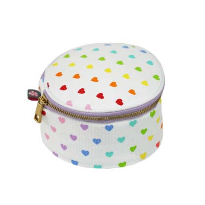 Has several open pockets around the inside edge for jewelry or other small tidbits.