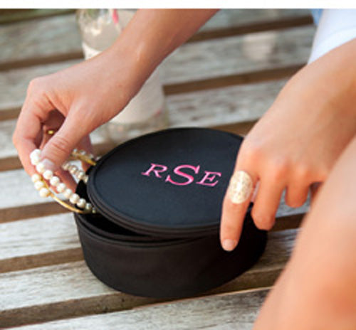 These jewelry rounds are a perfect gift for a loved one and for traveling. They are made of polyester with 8 mini interior open pockets and zipper closure. These are perfect for embroidery and vinyl!