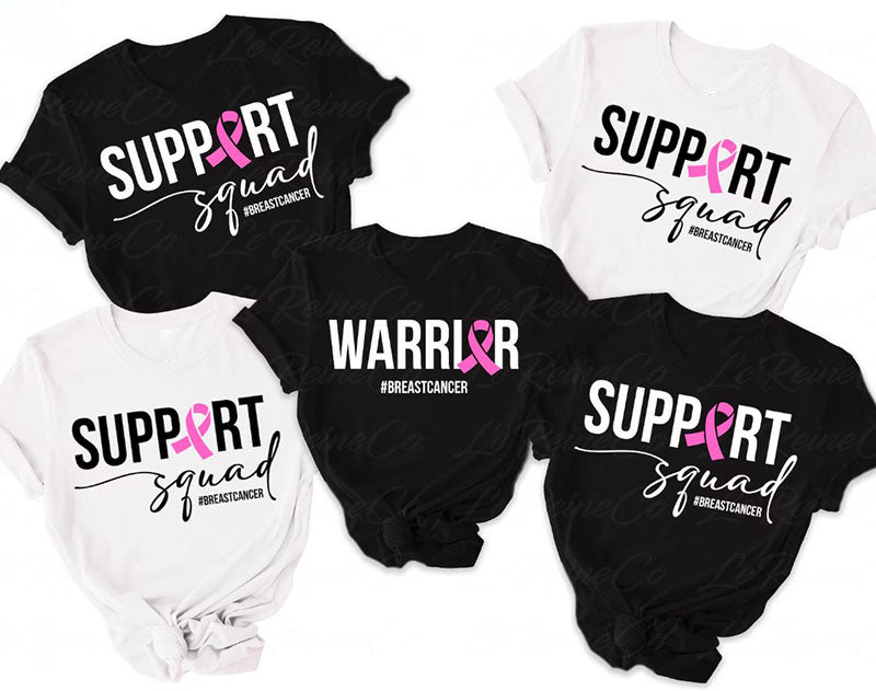 Make an impact with our Support Squad and Warrior breast cancer awareness transfers. These coordinating designs are ideal for group events, awareness walks, and fundraising teams—helping fighters, survivors, friends, and family show unity and strength.