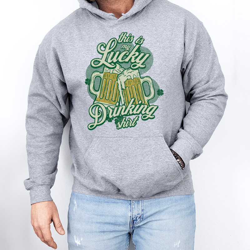 Cheers to good luck and good times! This fun St. Patrick’s Day design features two frothy beer mugs with vintage-style lettering that reads “This Is My Lucky Drinking Shirt.” Perfect for pub crawls, parties, parades, and celebrating with friends.