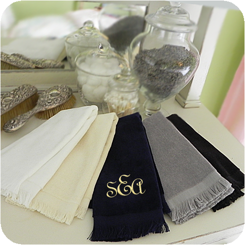 These beautiful fingertip towels are made from a luxurious velour terry with a beautiful sheen.  Wonderful for various holiday design sets, or beautiful with simple elegant monogram.