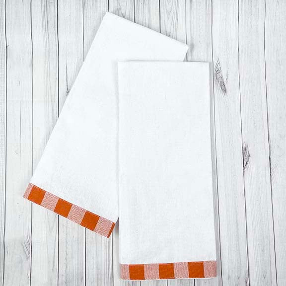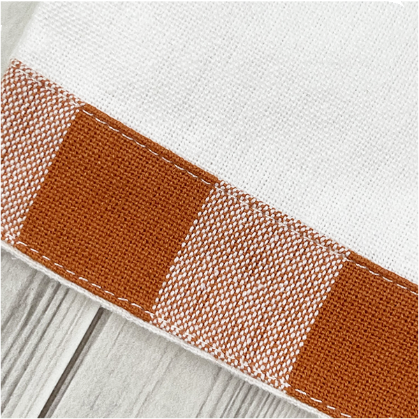 Our "famous" Vintage Gingham Trim Towels trimmed in Longhorn Orange! If you're from Texas, you know EXACTY what orange we're talking about! This orange is just a little "burnt", which makes it perfect for Fall/Thanksgiving designs! You don't have to be a Texas fan to absolutely love the versatility of this rich color!