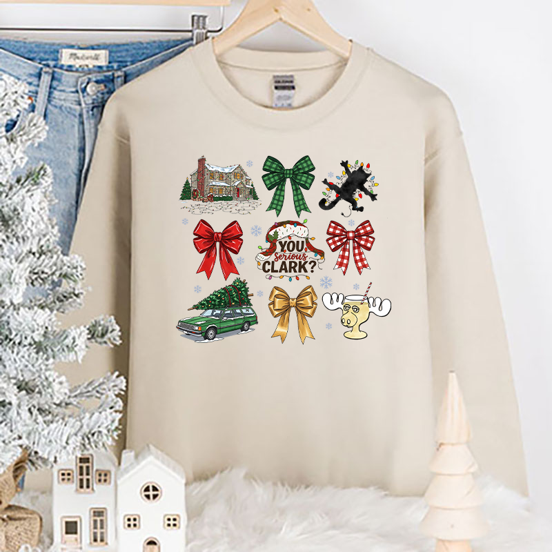 [message]A fun Christmas Vacation–themed motif collection for adult holiday crafting! Includes classic elements like the “You Serious, Clark?” hat, the lit-up house, moose mug, plaid bows, and more. Presses easily with a home iron or heat press. Works great on cotton and cotton-blend shirts — perfect for funny holiday tees, sweatshirts, and gifts.