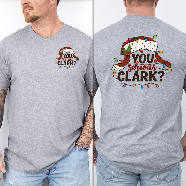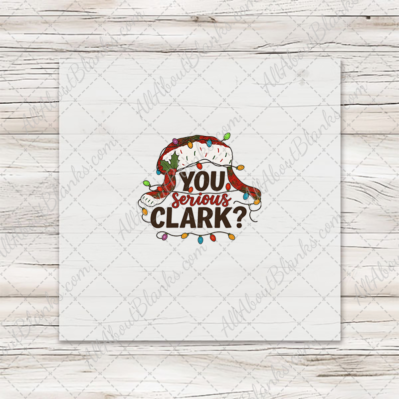 [message]A hilarious Christmas classic! This “You Serious, Clark?” DTF transfer features a vintage-style Santa hat trimmed in holly, wrapped in colorful Christmas lights, and bold lettering that pops on any tee or sweatshirt. Presses easily with a home iron or heat press and works great on cotton and cotton-blend shirts — perfect for holiday parties, family gatherings, and Christmas movie lovers.